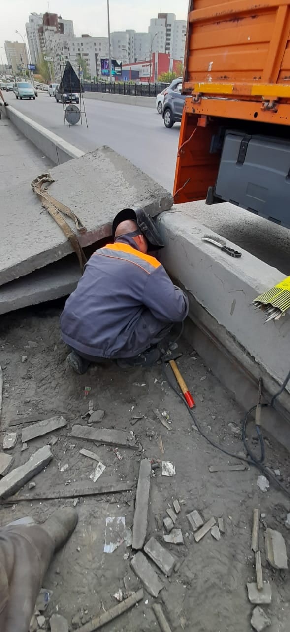 Специалисты МБУ «ВОИС» приступили к ремонту пешеходной части автомобильного моста по улице Бебеля, через реку Исеть в строну улицы Готвальда.